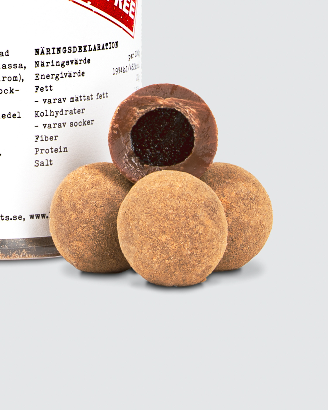 60% belgische Milchschokolade (Zucker, Kakaobutter, MILCHPULVER, Kakaomasse, Emulgator: SOJALECITHIN, natürliches Vanillearoma), Sirup, Maismehl, Zucker, Wasser, Invertzuckersirup, Lakritzpulver, Salz, Salmiak (Ammoniumchlorid), Feuchthaltemittel (E420/Sorbit), Konservierungsstoff (E202/Kaliumsorbat), Aroma, Kokosöl, Überzugsmittel (E903/Karnaubawachs). Kakaoanteil: mindestens 33,6%