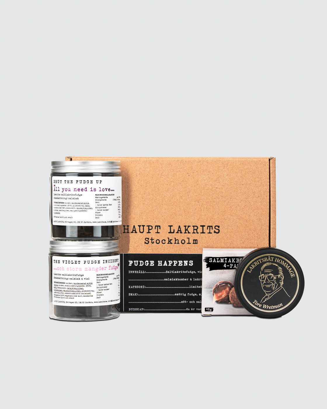 Shut the fudge up, The violet fudge incident, Salmiakbomben 4-pack, Lakritsbåt 'Hommage' Tore Wretman